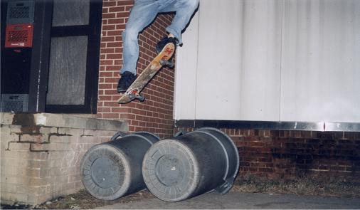 loading dock ollie over two trash cans
