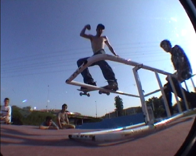 frontside tail slide on a improvised rail