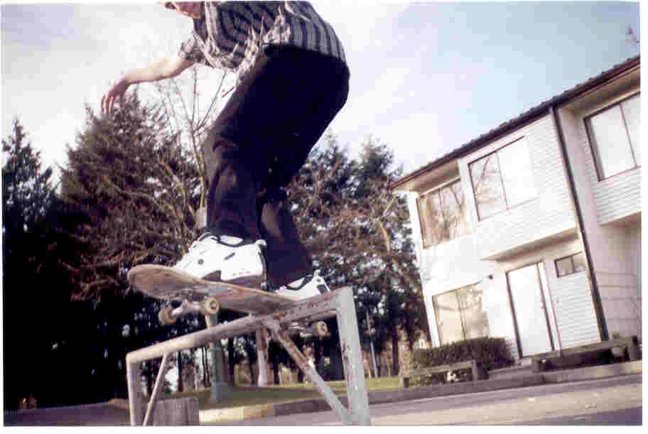 Frontside Boardslide a homemade handrail