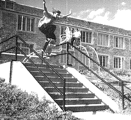 Ollie down a nine stair set.