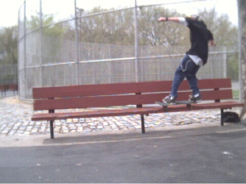 Board Slide on a park bench