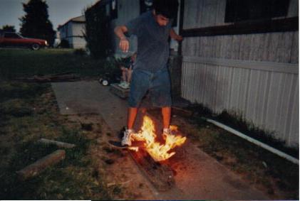 Boardsliding over fire
