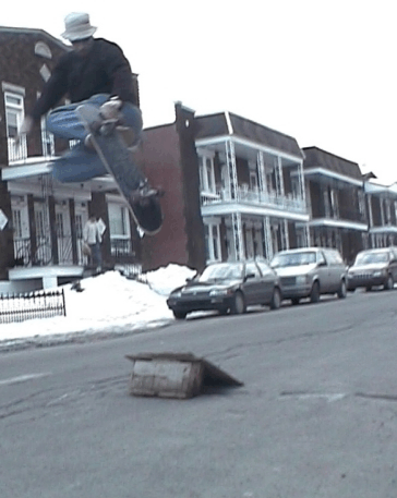 Grab-Air 180 off of small hit.